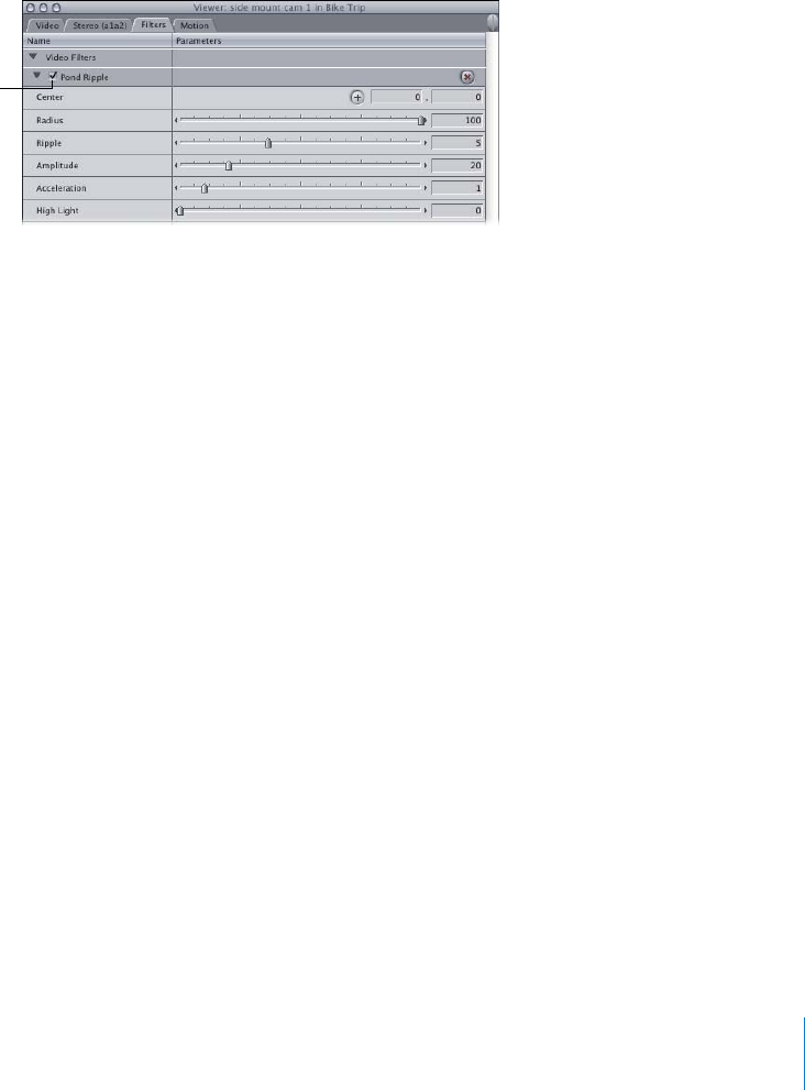You can turn a filter on or off without removing it from a clip. This is useful for