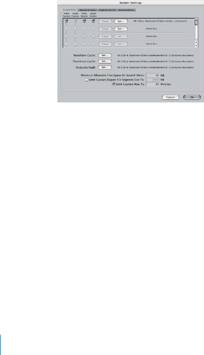 For additional information about scratch disks, see Final Cut Express Help, Chapter 4,