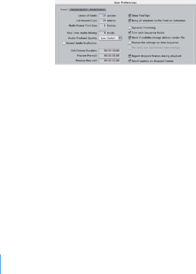 tab of the User Preferences window.