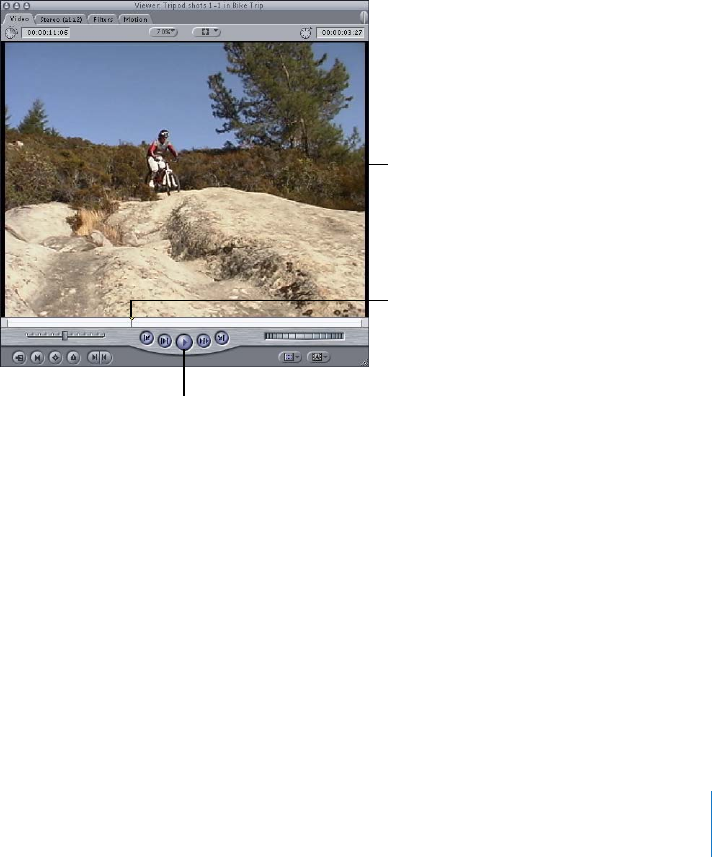 3 Use the Viewer controls to move the playhead to the point in your clip where you want