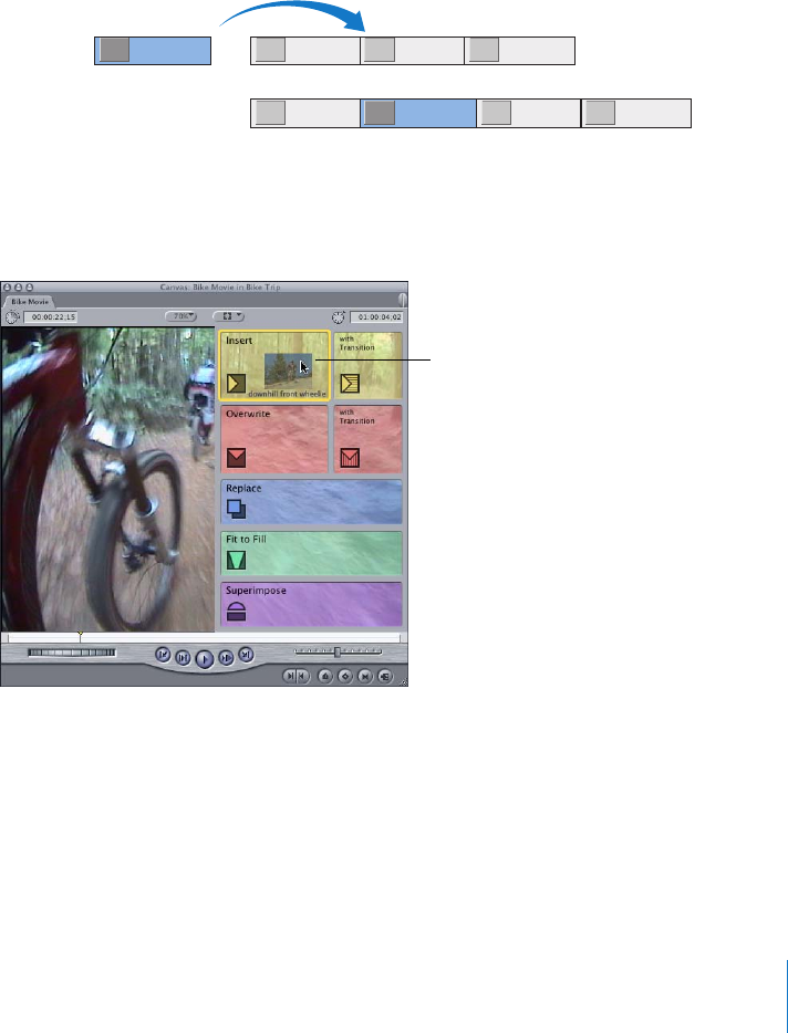 more information on insert edits, see Final Cut Express Help, Chapter 15, “Basic Editing.”